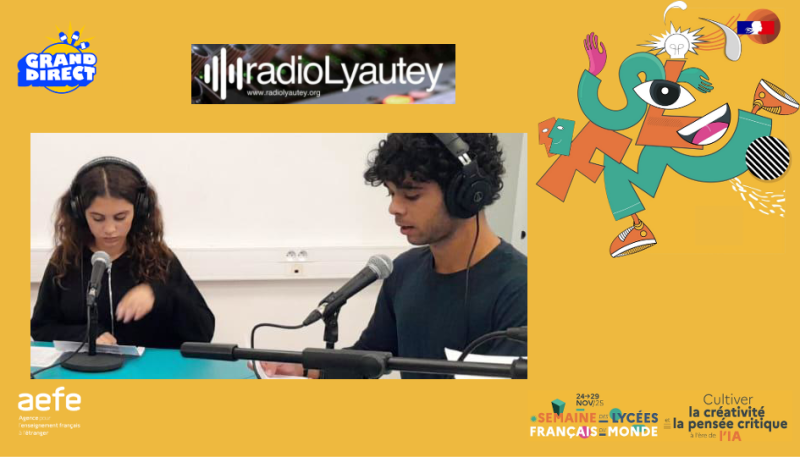 A l’occasion de la Semaine des lycées français du monde, les élèves de la classe médias du lycée Lyautey, la 214, ont réalisé une émission dans les conditions du direct au sujet de l’IA. Ils ont réfléchi aux questions qui se posent, notamment sur la créativité, mais aussi sur les métiers qui évoluent, son usage à l’école et sur la nécessité de développer son esprit critique à l’heure de l’IA.